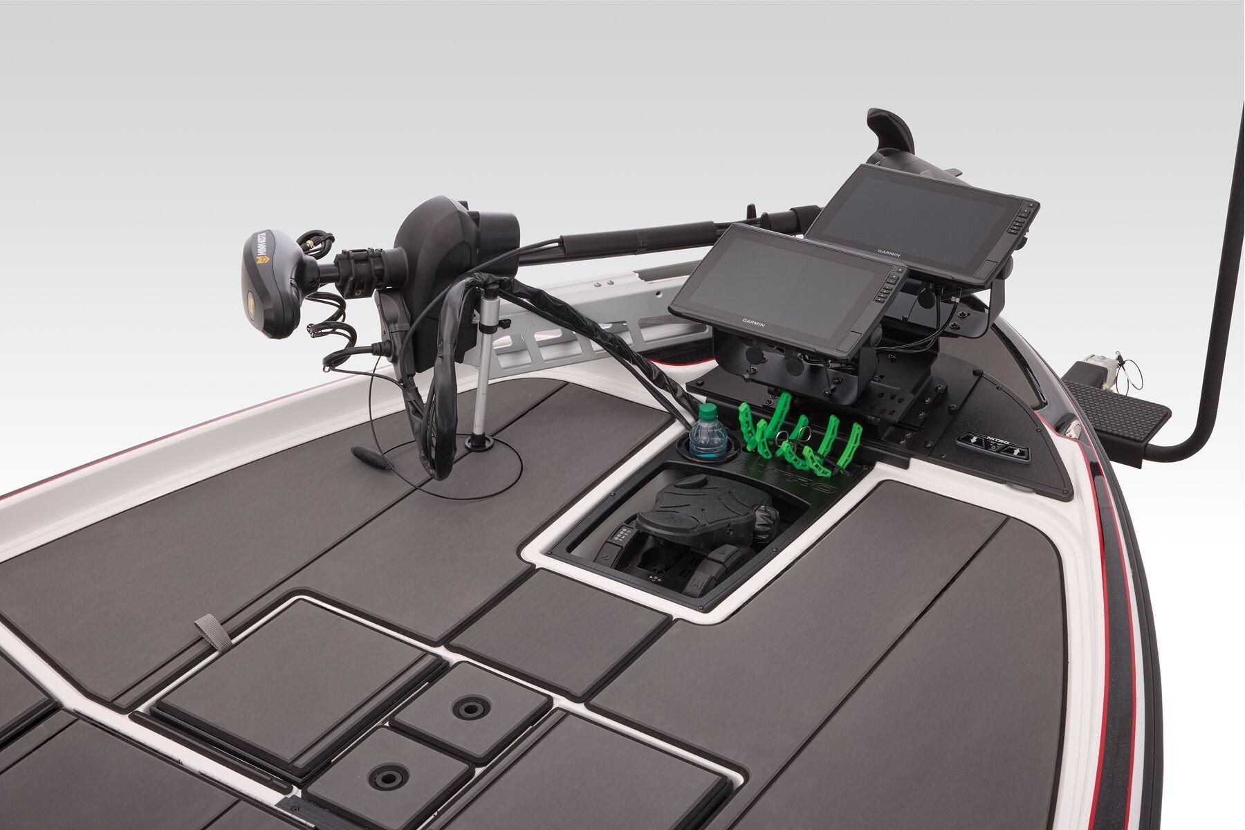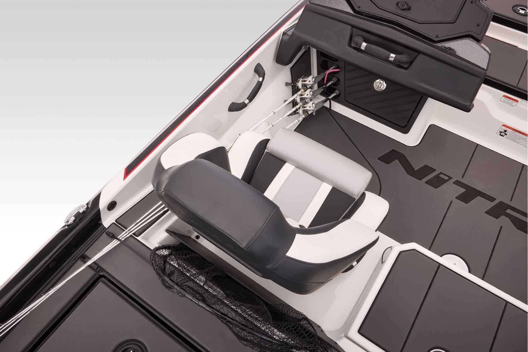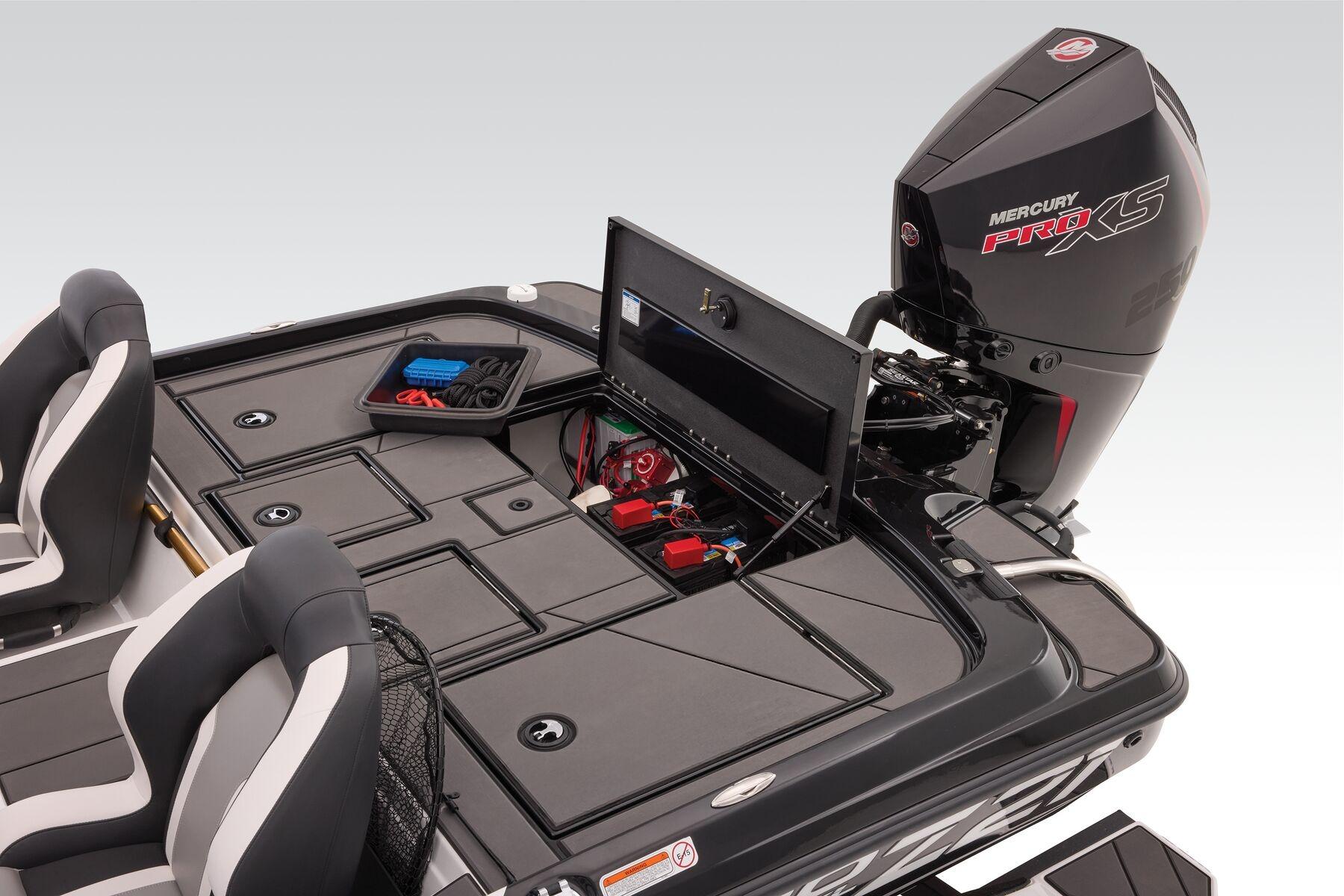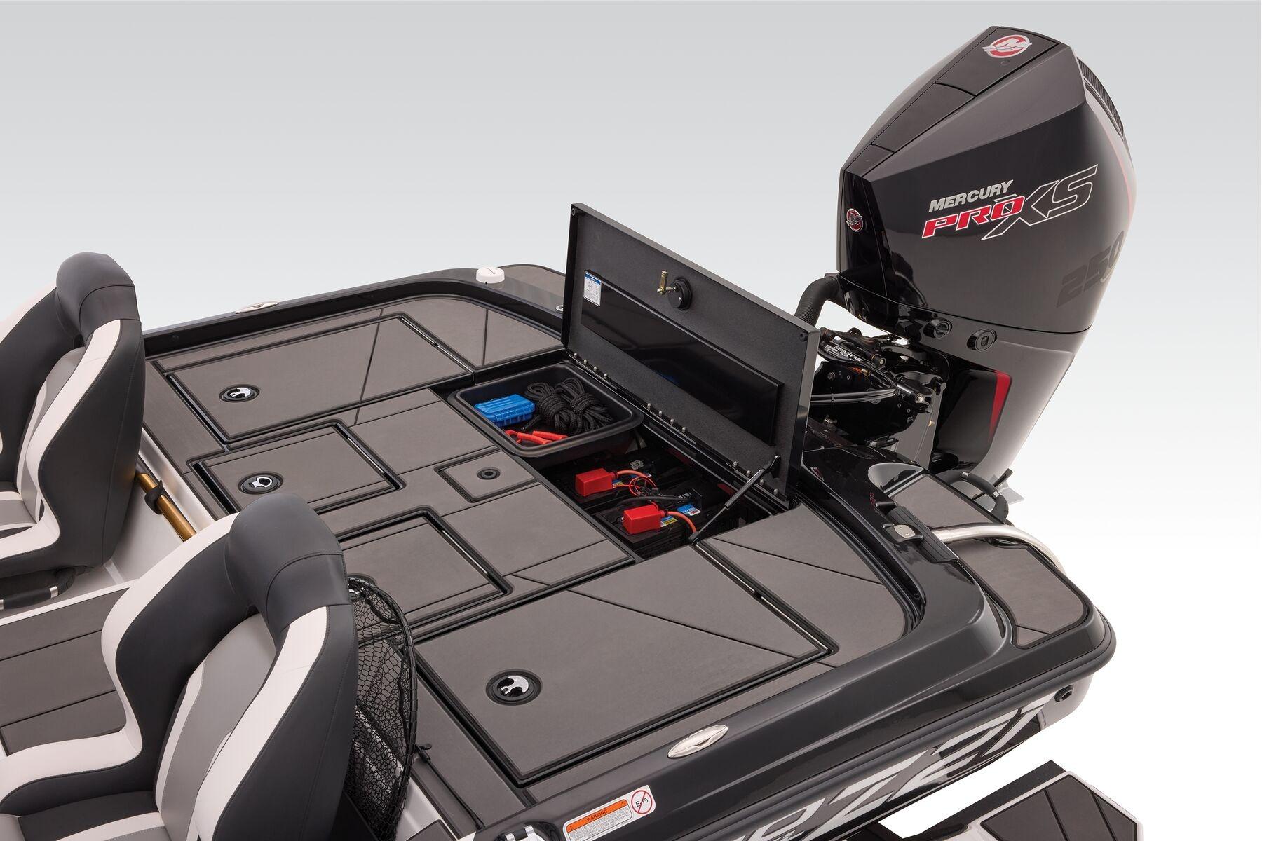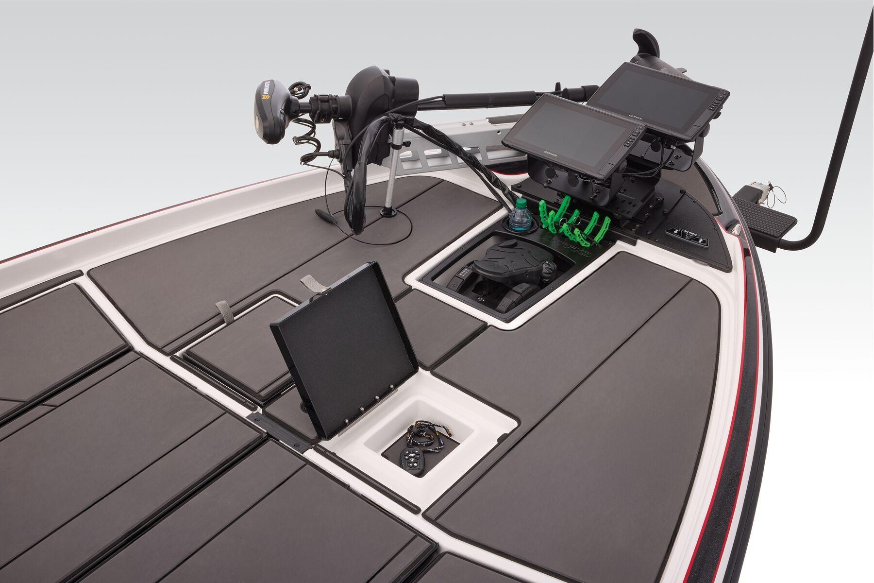 Sports car performance, sedan comfort, SUV utility. The NITRO® Z21 XL combines these and more into the ultimate no-holds-barred bassin’ rig. In the 21-foot class, the Z21 XL stands alone in performance-driven fishability with a colossal casting deck, pro-driven layout, and all the fishing features demanded by the top pros. Up front, an extra-wide bow gives you more stability on the trolling motor, and you’ll be at your best all day thanks to the padded front deck. The colossal center stows carry both rods and tackle in organized security and are accessible at a moment’s notice. All-new slam latches mean no more twist latches to trip over when left undone. Underfoot in the cockpit is an EVA foam pad for fast-drying non-skid grip, while the helm is an angler’s dream, carrying electronics up to 16”, a full gauge set, and the NITRO® Z-TOUCH™ touchscreen control center. Z-CORE™ suspension seating saves your back in chop and keeps you centered in high-performance turns thanks to the side-bolstered design. The running surface of the Z21 XL features NVT™ technology for instant planing, nimble handling, and superior speeds with a full load. Our engineers focused on real-world tournament conditions to deliver a better experience with a full load, fishing partner, full livewells, and a full complement of gear to give you the pro-grade experience you’ve been looking for.
