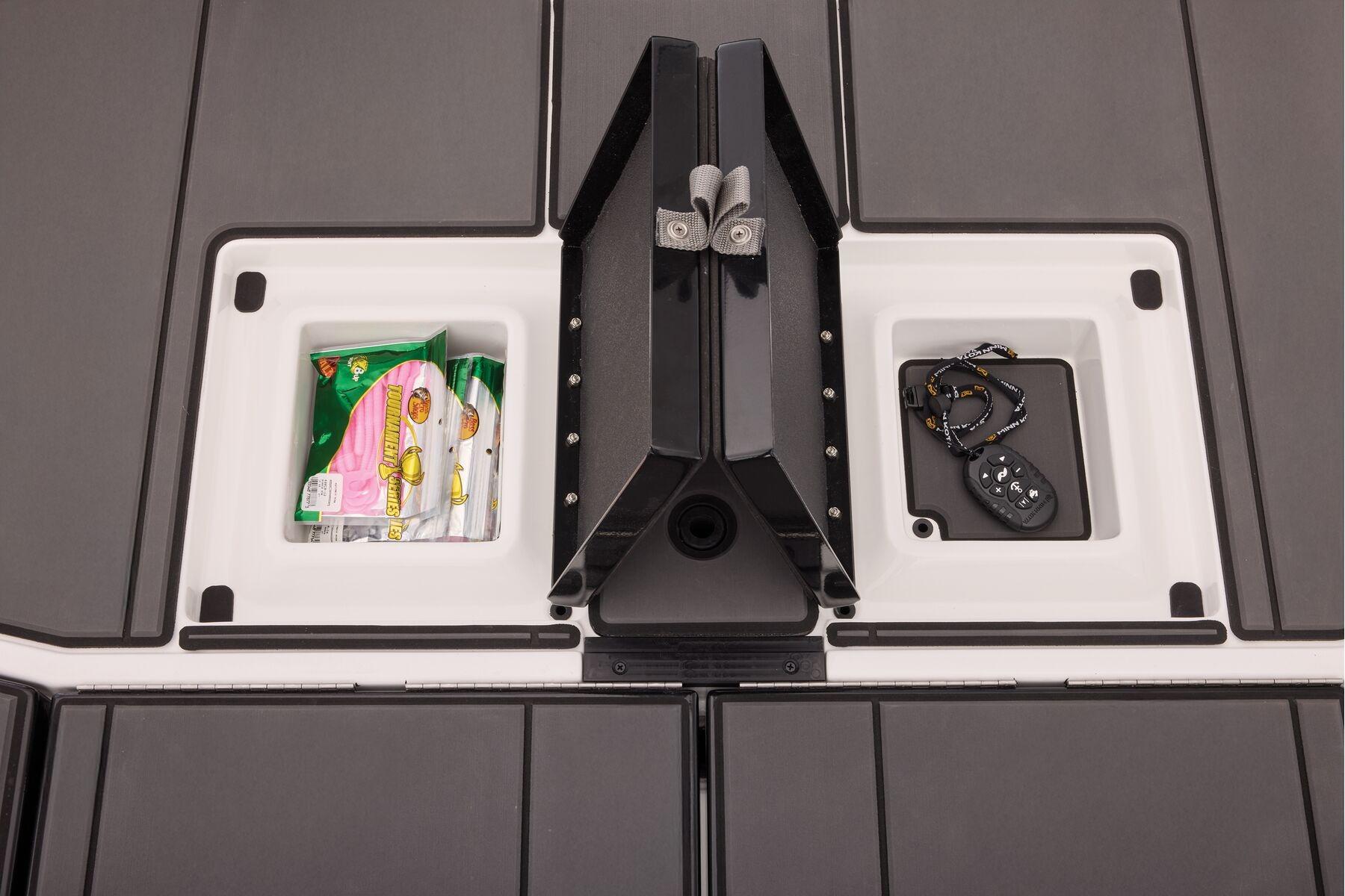 Step to bow deck w/86-qt. (81.39 L) insulated cooler, removable trash receptacle & snap-in sandwich tray