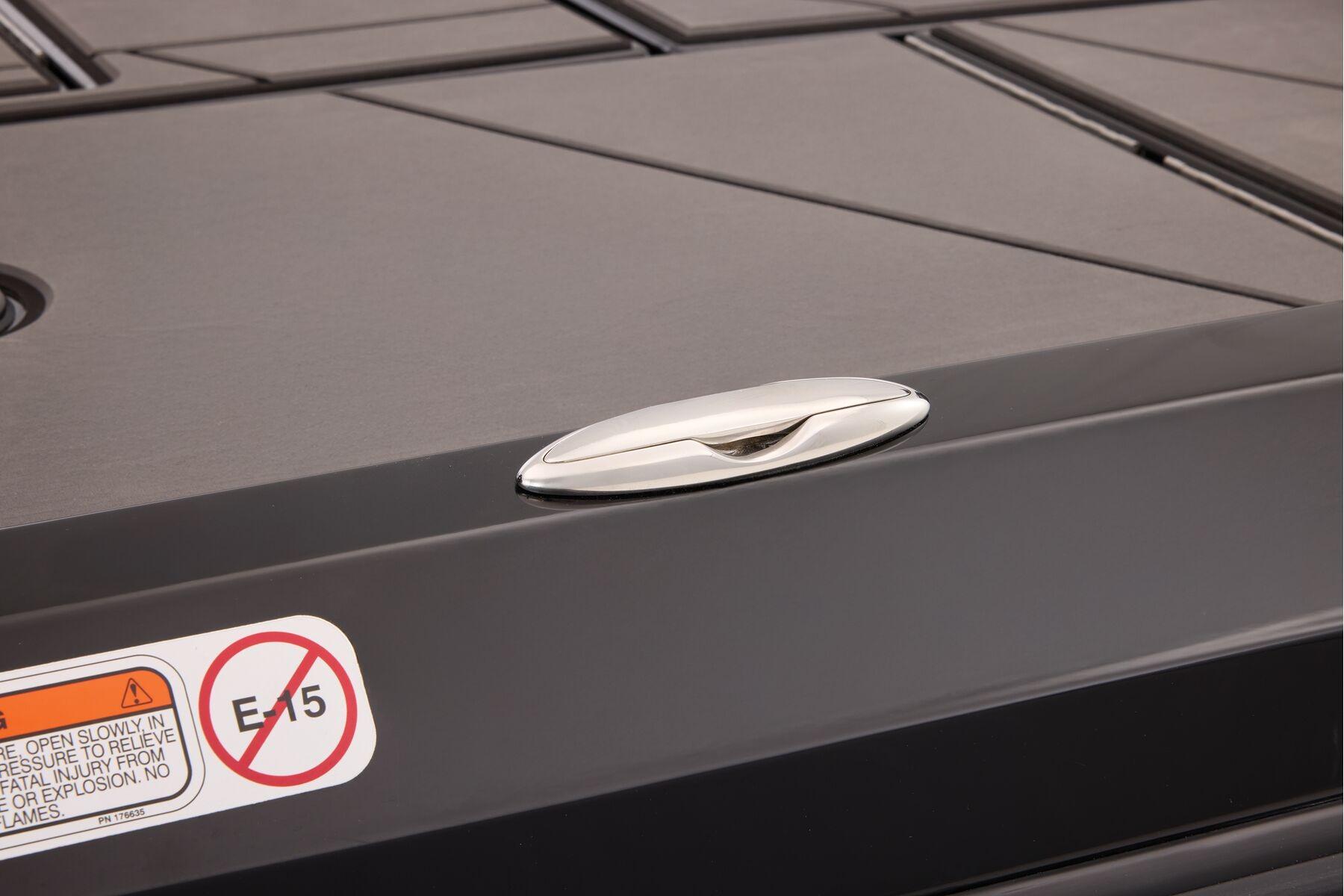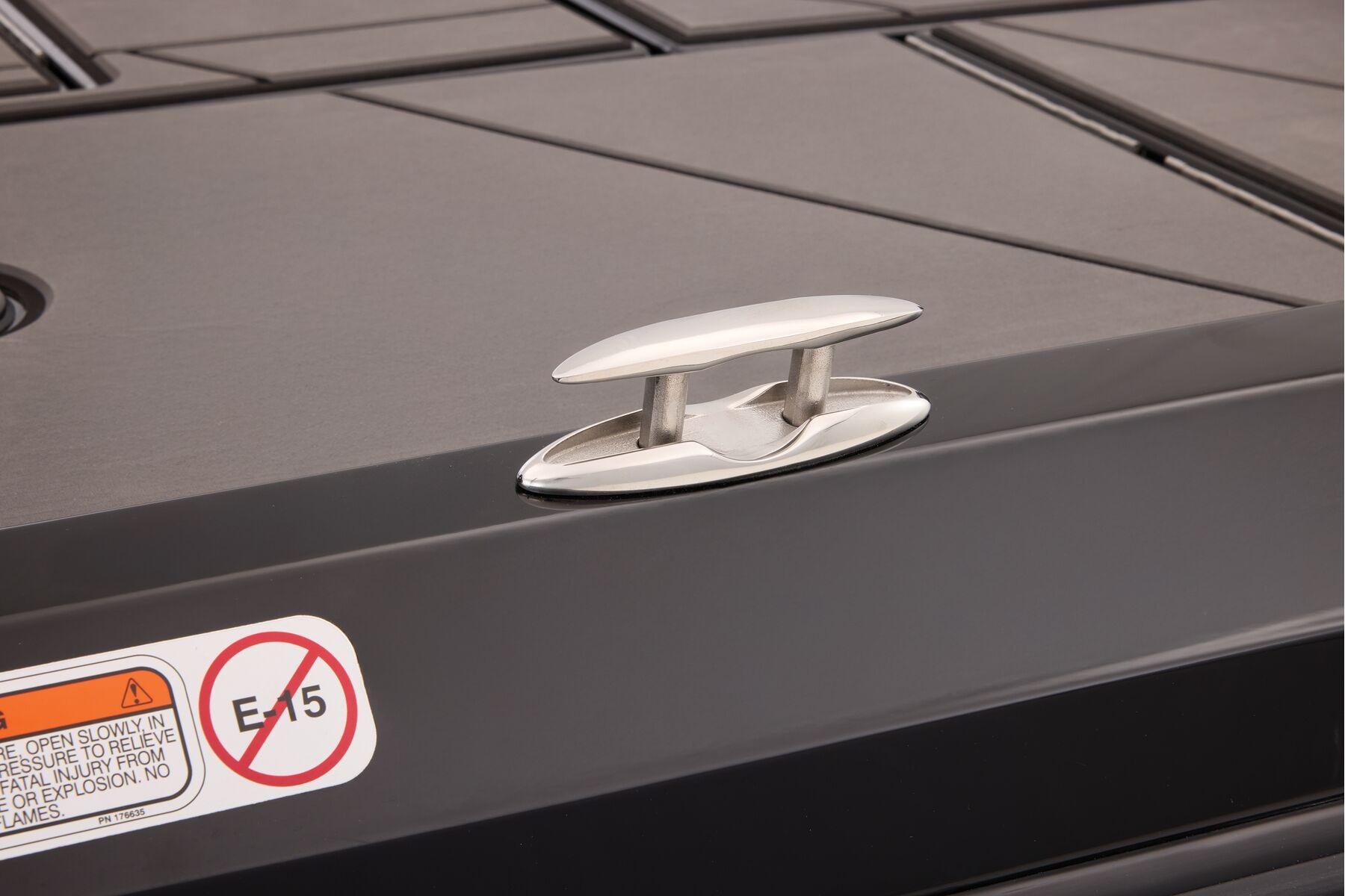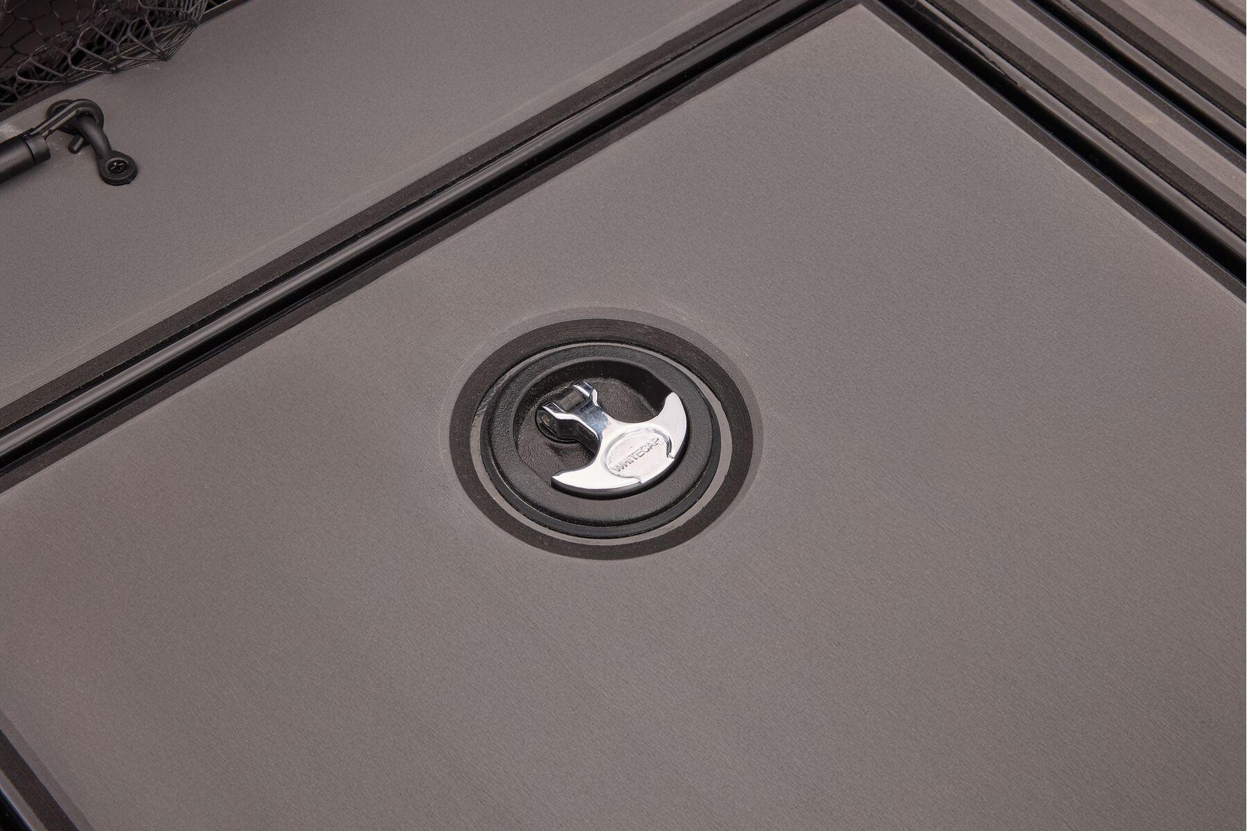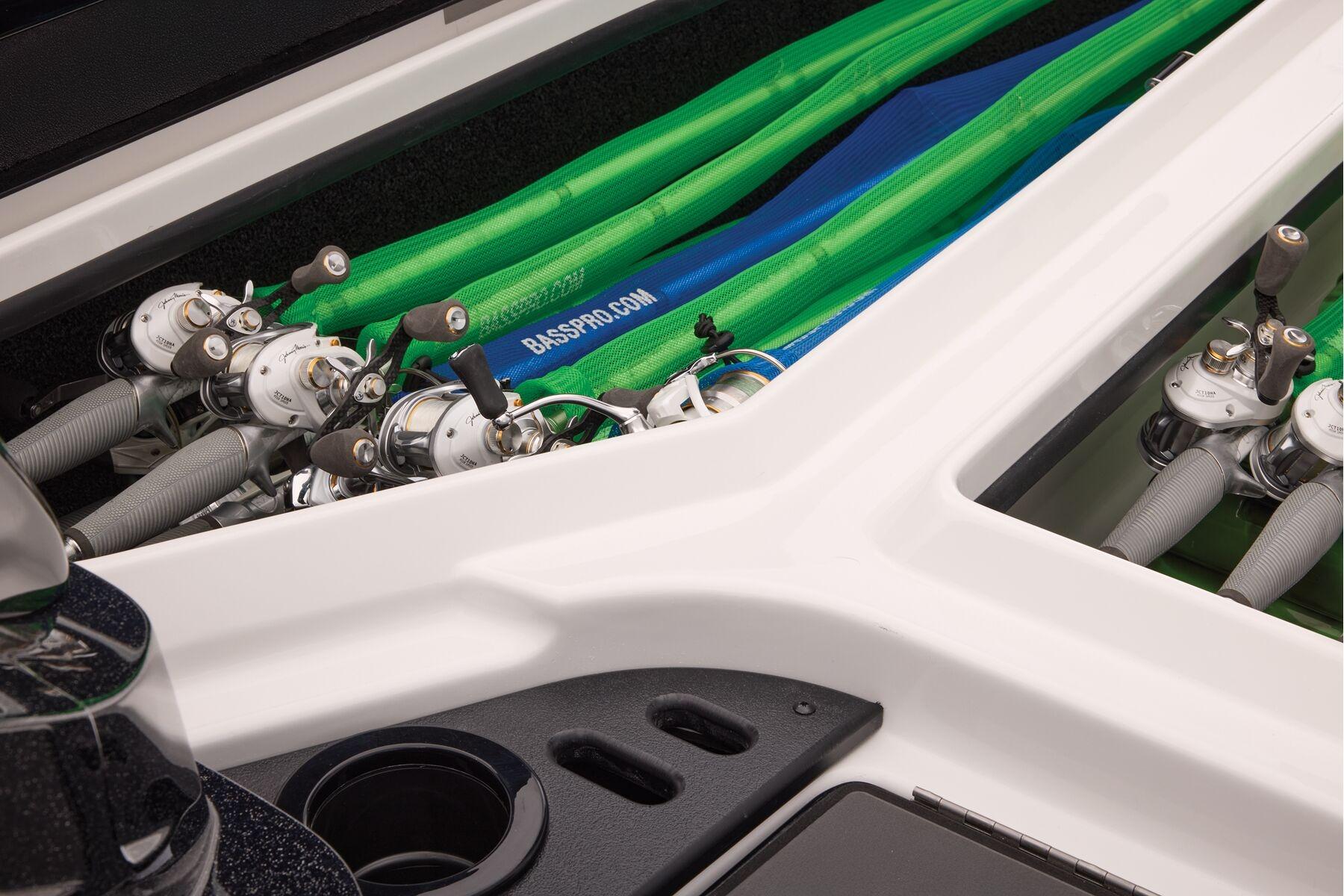 Oversized, lockable bow port & starboard rod lockers w/lift assists for rods up to 8' (2.44 m) & 23 tapered tubes in port locker