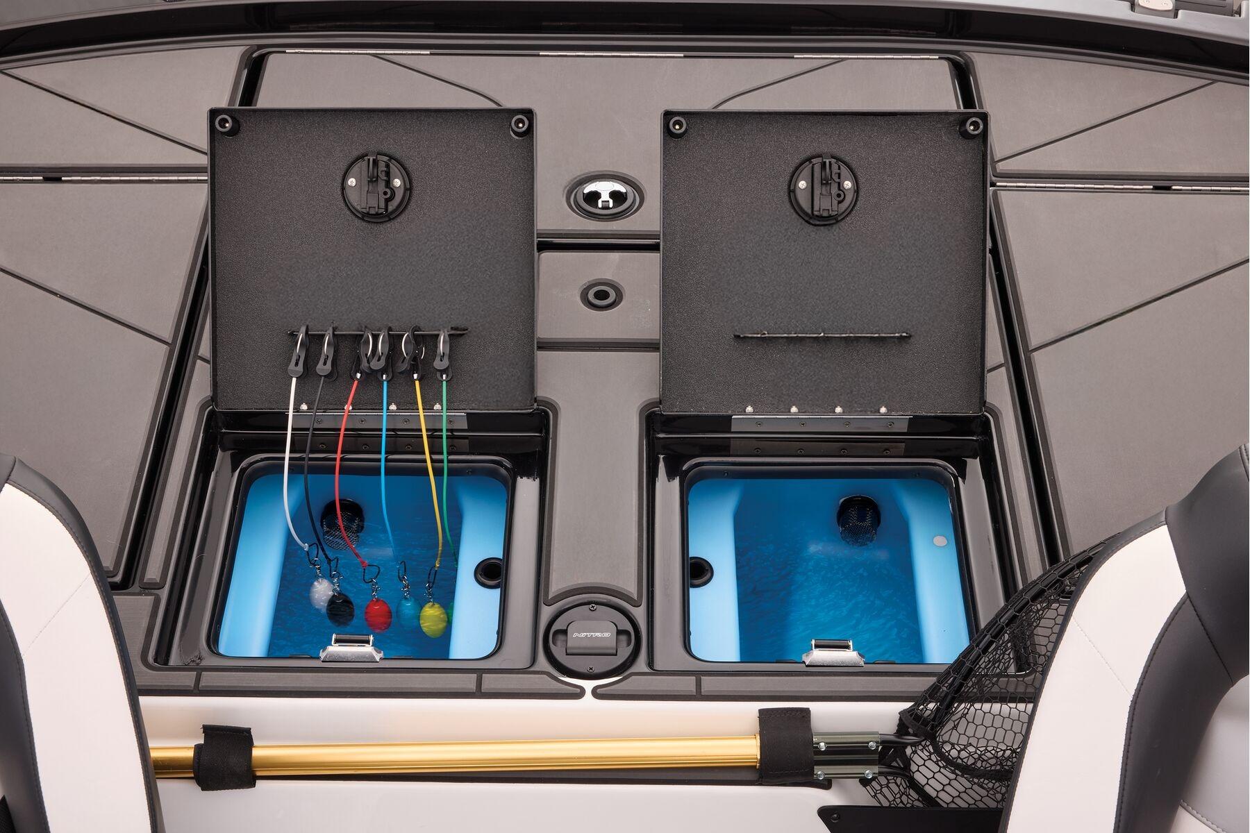 2 aft 19-gal. (71.92 L) insulated, rotomolded GUARDIAN™ livewells w/digital timers & rounded corners
